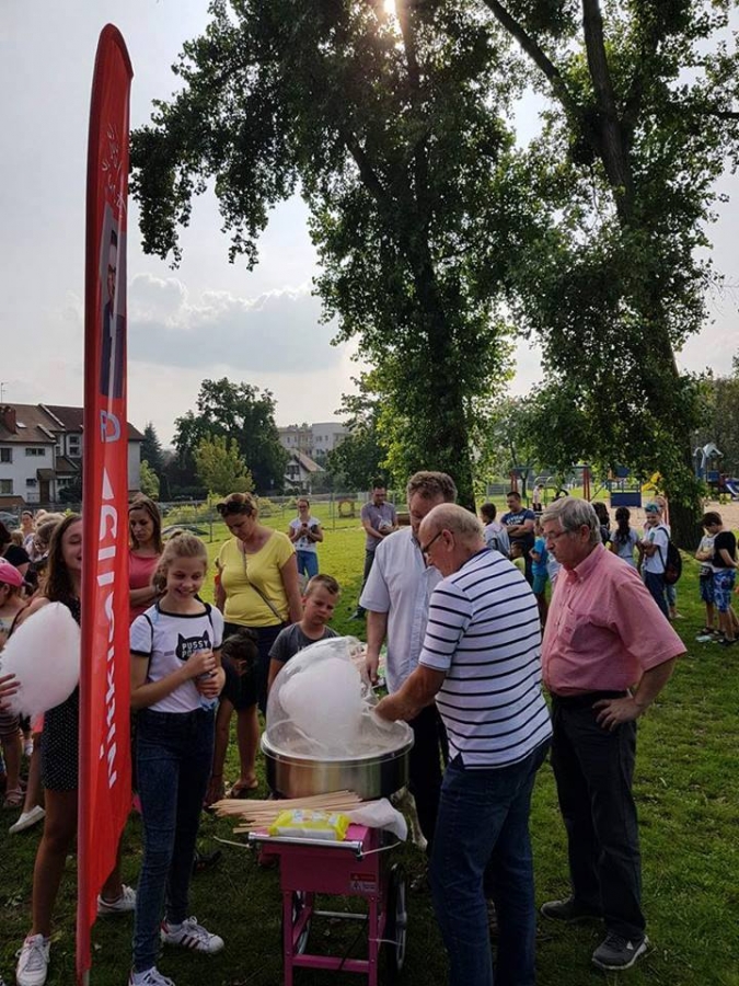 Podczas festynu zbieraliśmy podpis poparcia pod projektem darmowych przejazdów komunikacją miejską dla uczniów szkół podstawowych oraz za budową integracyjnego wodnego placu zabaw.
