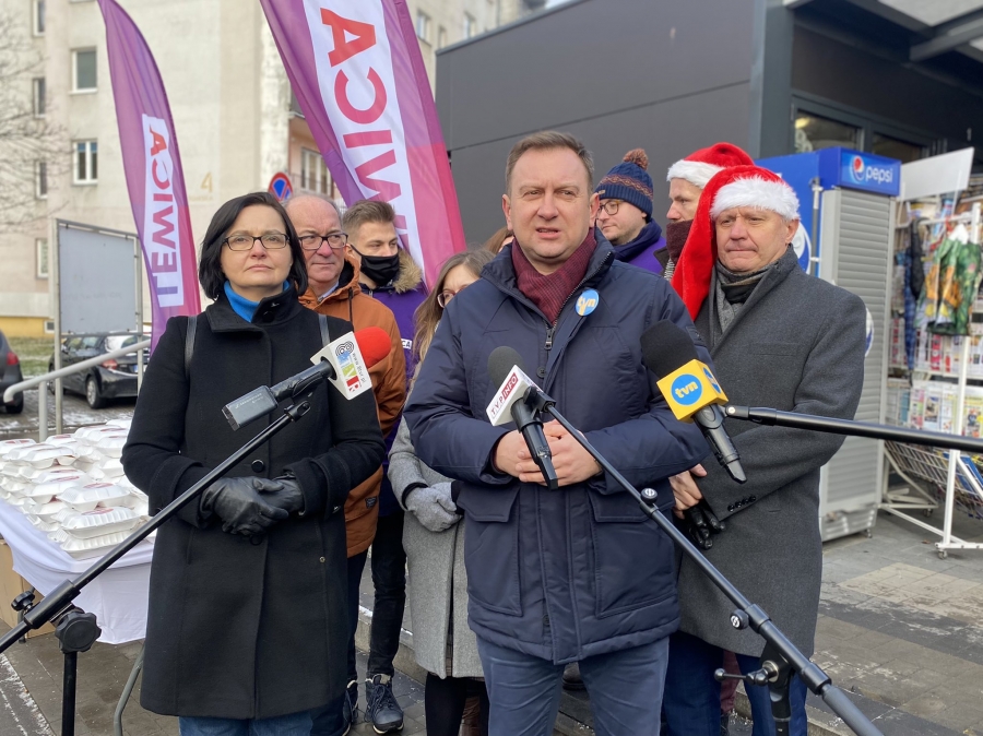 „To stało się już tradycją, że Lewica przed świętami wychodzi do ludzi i dzieli się posiłkiem. Będziemy rozdawać pierogi, kapustę z grochem, barszczyk świąteczny, ale również ciasto. W Polsce jest wiele osób ubogich, to ubóstwo wzrosło od 2019 roku i dziś to już 5% ludzi, którzy żyją w skrajnej biedzie. Wśród tych ludzi, aż 400 tysięcy to dzieci i niestety lepiej nie będzie, póki szaleć będzie drożyzna. To właśnie o drożyźnie mówi nam najwięcej osób, które przychodzą po te posiłki, skarżą się na rosnące ceny chleba, karpia, nawet kapusty kiszonej. My jesteśmy po to, żeby pomagać i to będziemy robić” – podkreśliła w Zduńskiej Woli posłanka Anita Sowińska.
